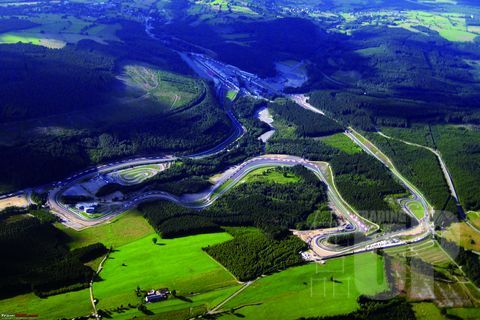 纽博格林北环赛道位于比利时边界的郊区,是世界上最大的赛车场。赛道横贯在山原丘陵之间,在原始的山林之间任赛车高速穿梭,赛道随山势起伏,云霄飞车一般的比赛过程,被很多人称作是“绿色地狱”。